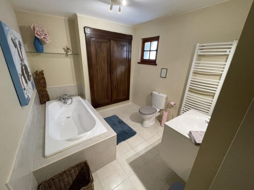 Badkamer 1 en 2: de een met een ligbad en de ander met een douche. Beide badkamers zijn voorzien van een wastafelmeubel en een toilet.