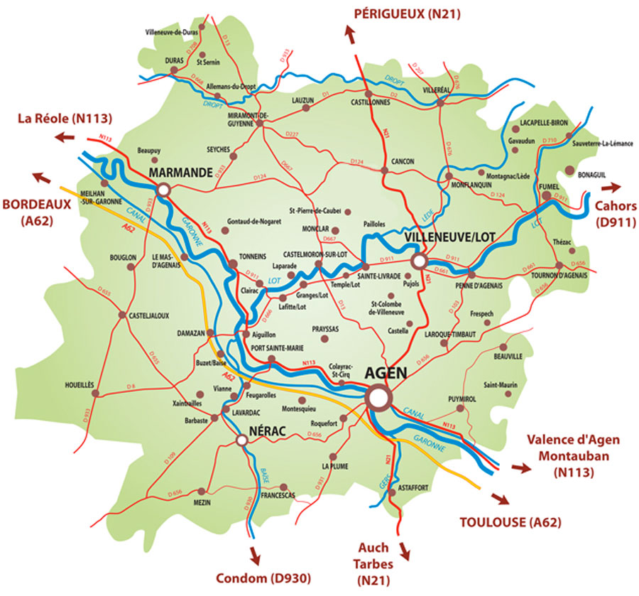 Kenmerkend voor de Lot-et-Garonne is het glooiende landschap vol wijnvelden, cipressen en schilderachtige dorpjes. Elke dag is er wel een marktje te bezoeken in een van de vele dorpjes en ook staat de Lot-et-Garonne bekend om haar avondmarkten. Je koopt aan de kraampjes zelf het eten, neemt bestek mee en je schuift aan aan de lange tafels op het marktplein.